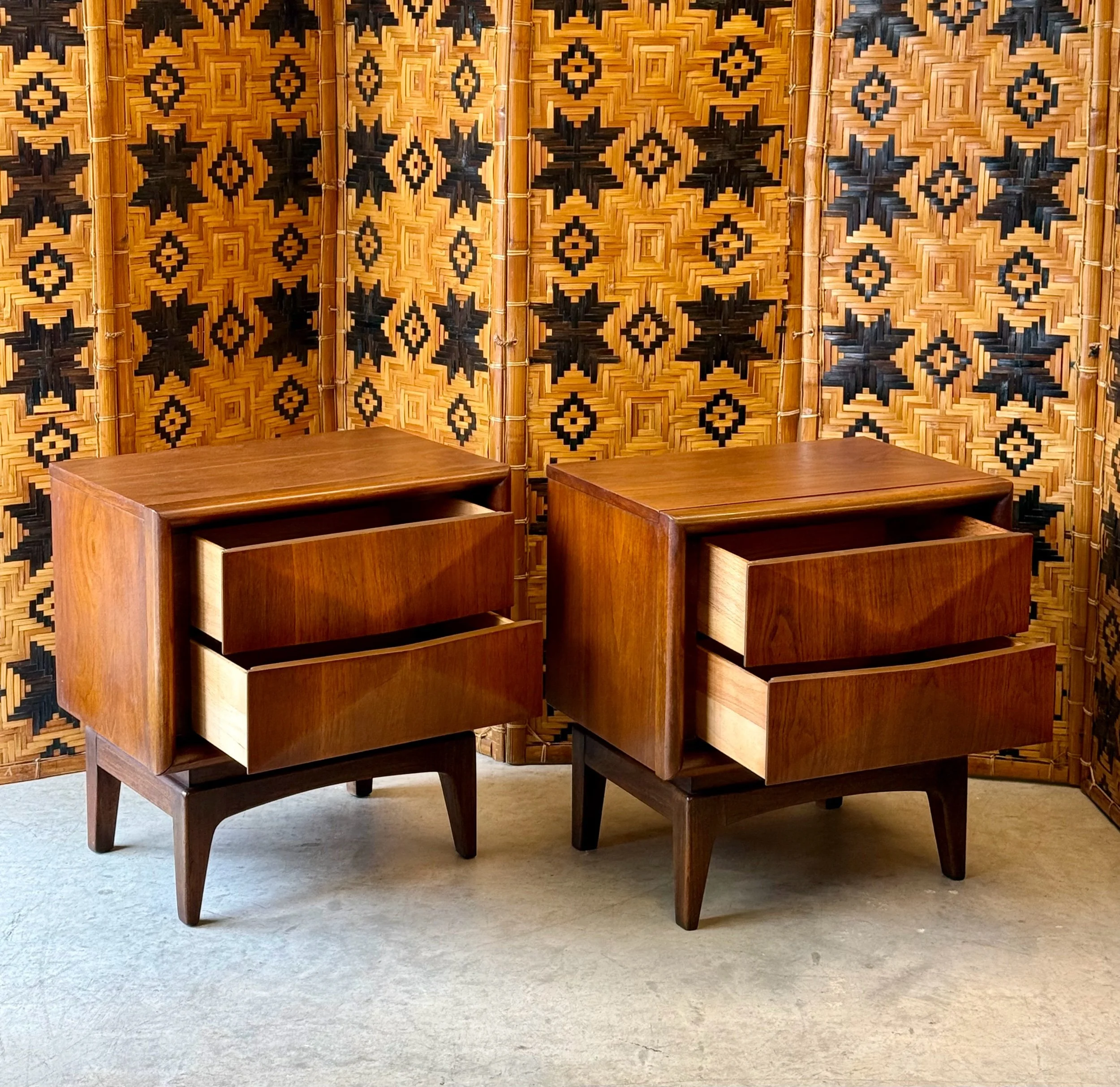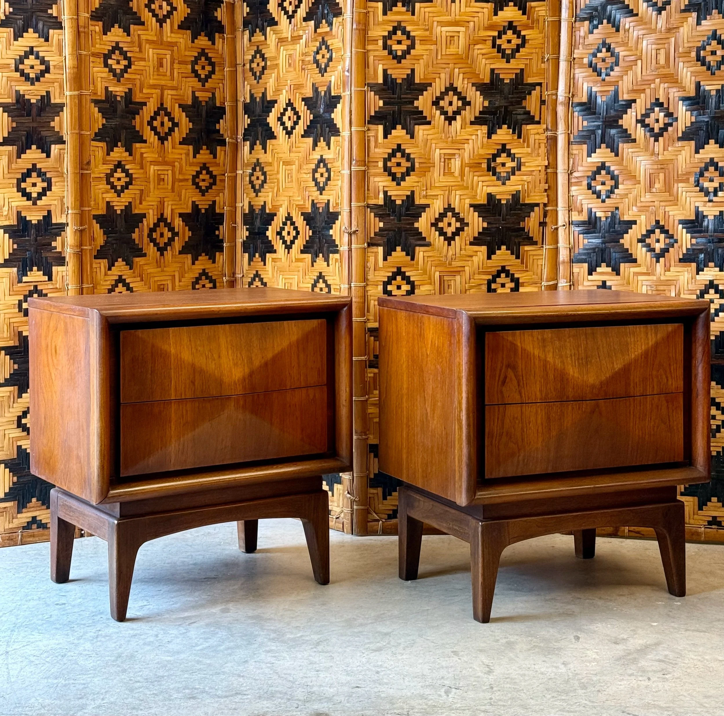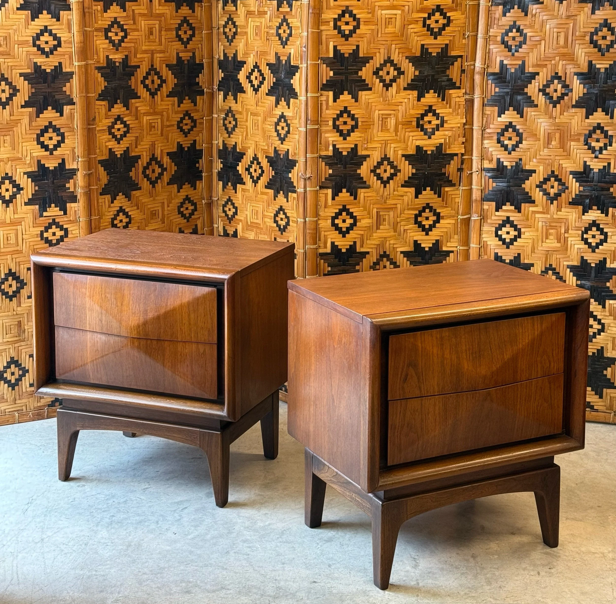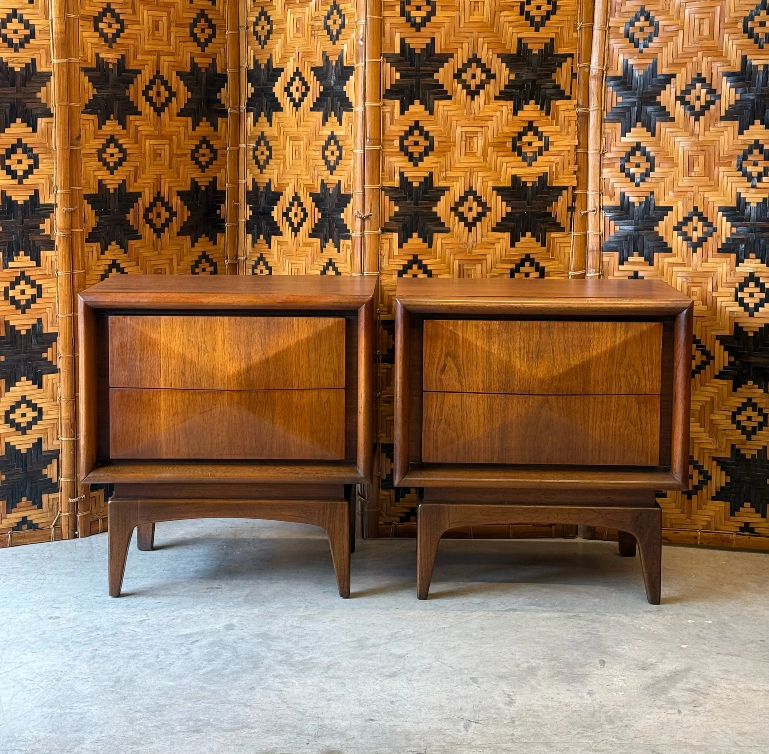 Categories: ALL NEW FURNITURE Credenzas and Dressers Sofas and Lounges Coffee and Side Tables Dining and Bar Freestanding and Wall Mounted Units Desks Bedroom DECOR Accessories Art Lighting Rugs and Textiles FEATURED ARTISTS SALE GIFT CARD ALL / FURNITURE / Bedroom Mid-Century Diamond Front Nightstands by United Furniture - a Pair $2,495.00 Mid-Century Campaign Style Nightstands by Stanley Furniture - a Pair Sale Price: $895.00 Original Price: $1,295.00 Sale Mid-Century Pair of Nightstands by Lane Furniture Sale Price: $1,295.00 Original Price: $2,195.00 Sale