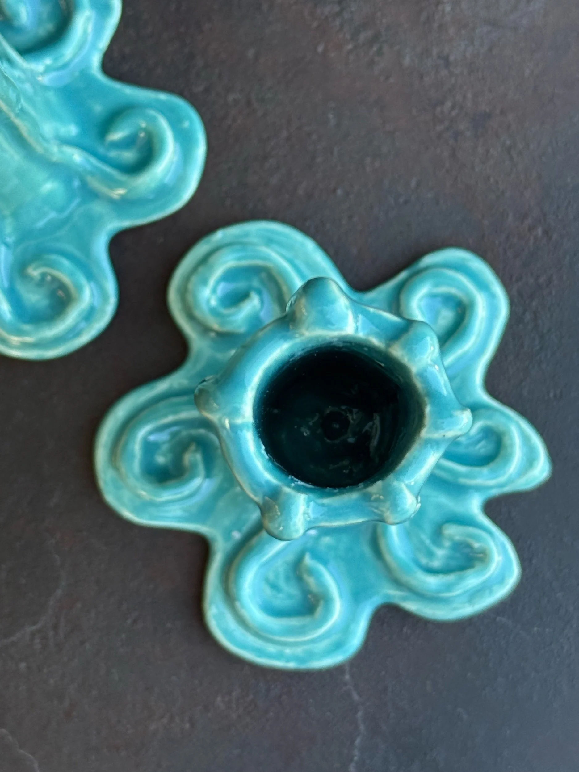 Locally made ceramic candle holders by artist Susanne Portanova.