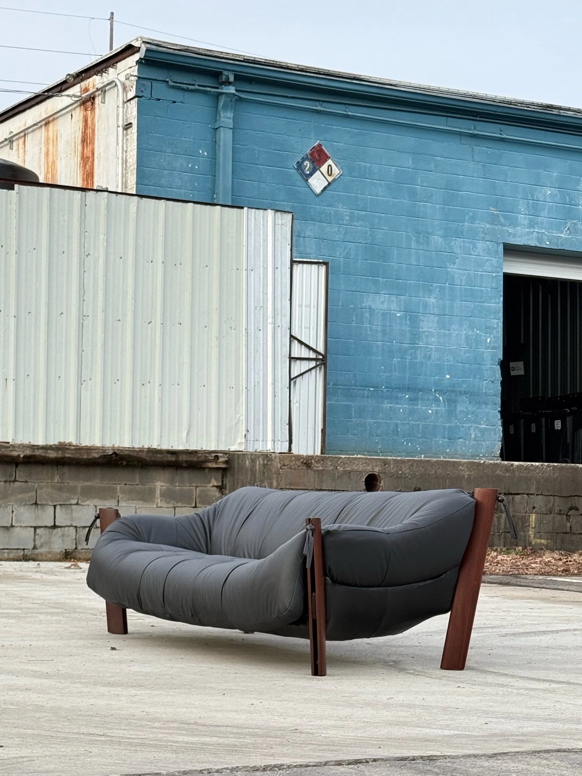 When a piece is absolutely perfect as originally designed, but needs a little love - we tried to mimic the original upholstery as much as possible. An incredible sofa that provides comfort and the most visual appeal. In great vintage condition with minor wear consistent with age and use.