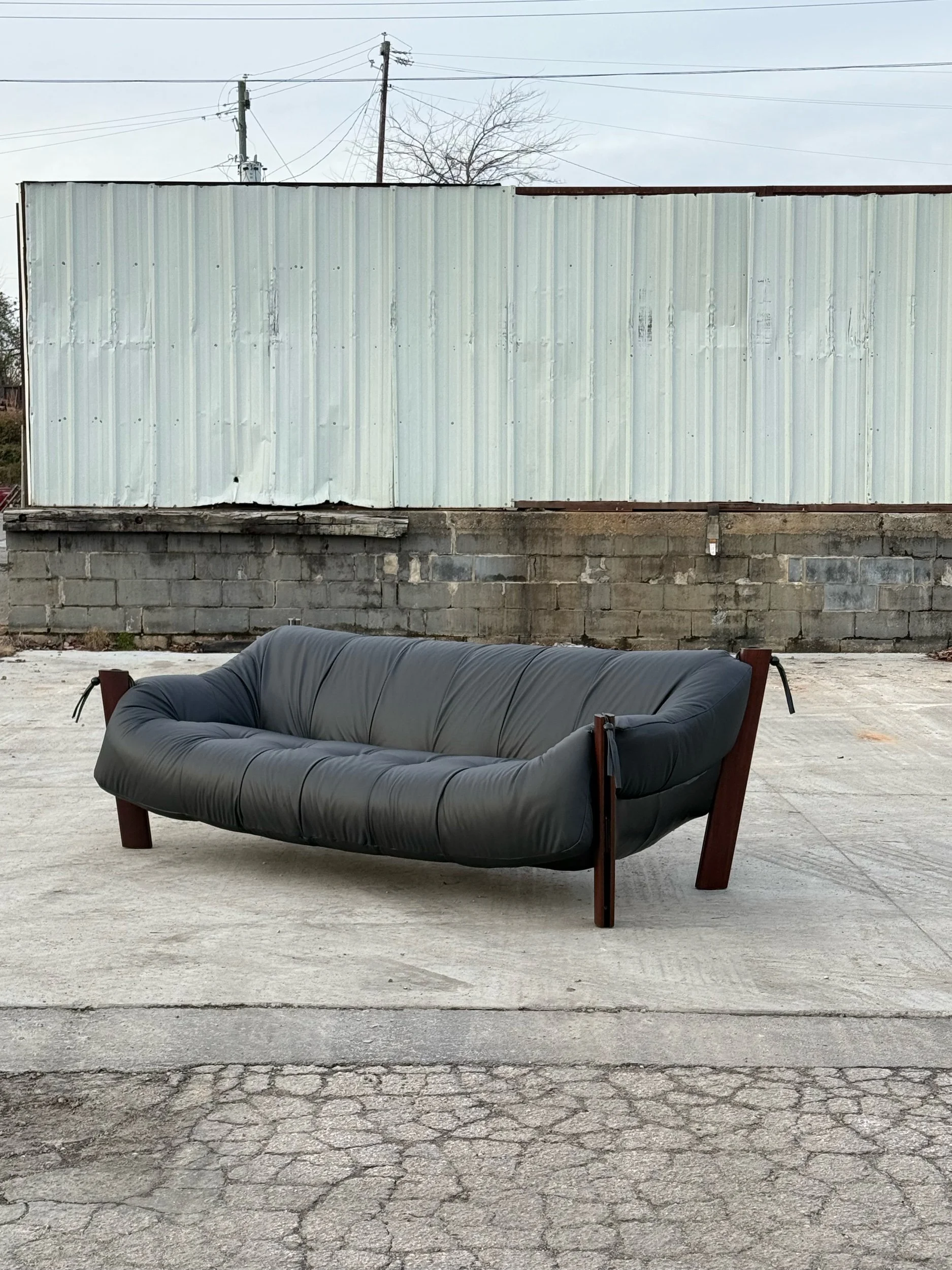 Mid-century leather and rosewood model no. MP-211 by Percival Lafer. Made circa 1970s, Brazil. A gorgeous mix of materials and incredible design showcase why Lafer is one of our favorite designers from the mid-century era.