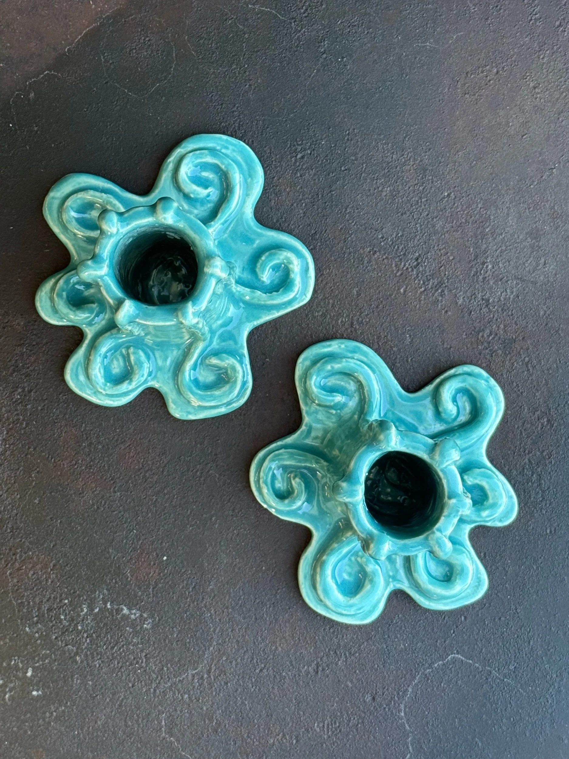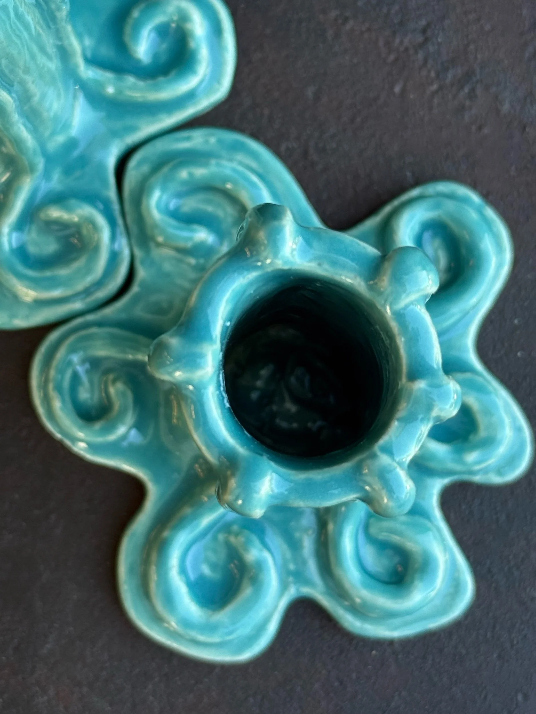 Locally made ceramic candle holders by artist Susanne Portanova.