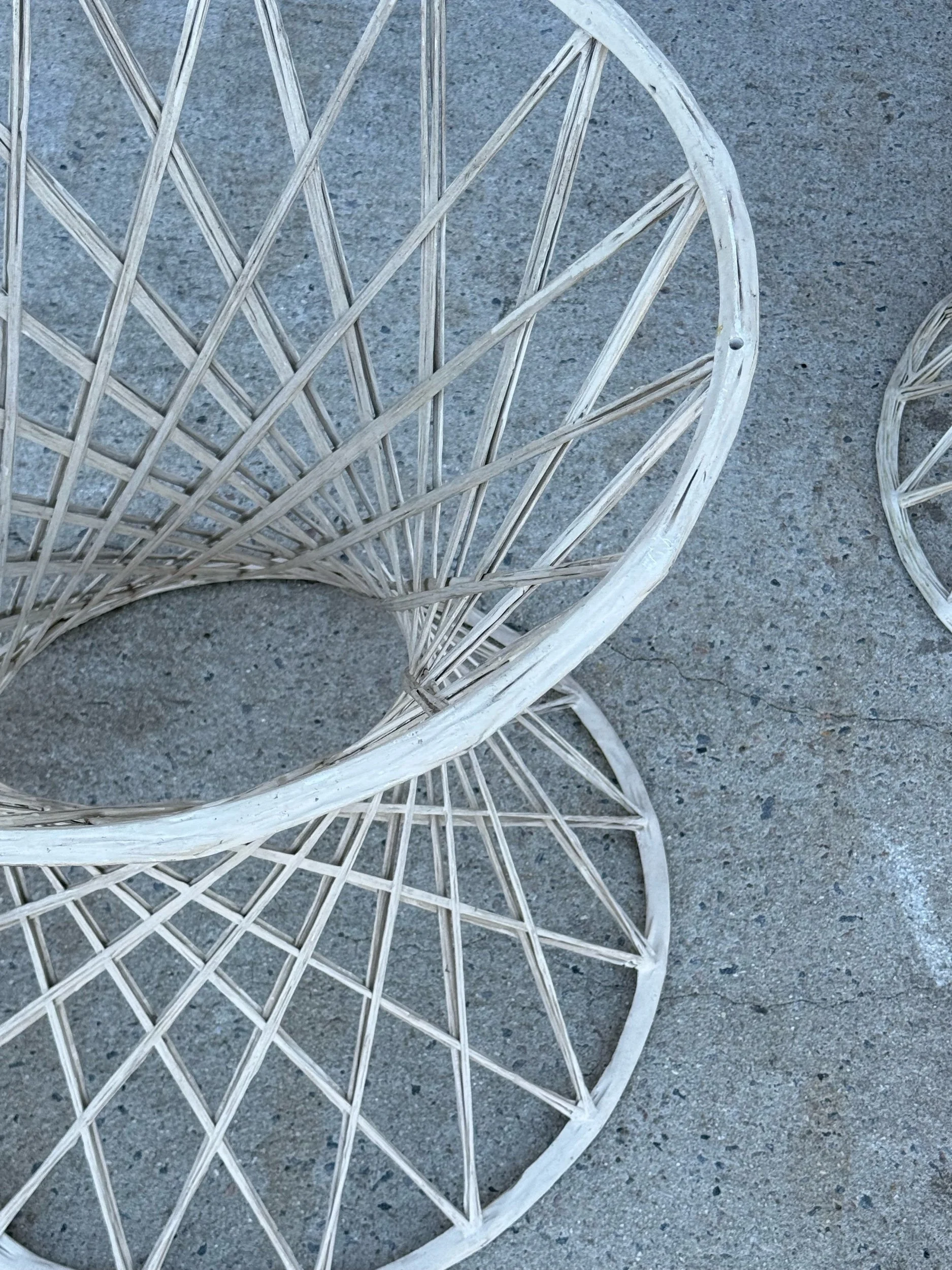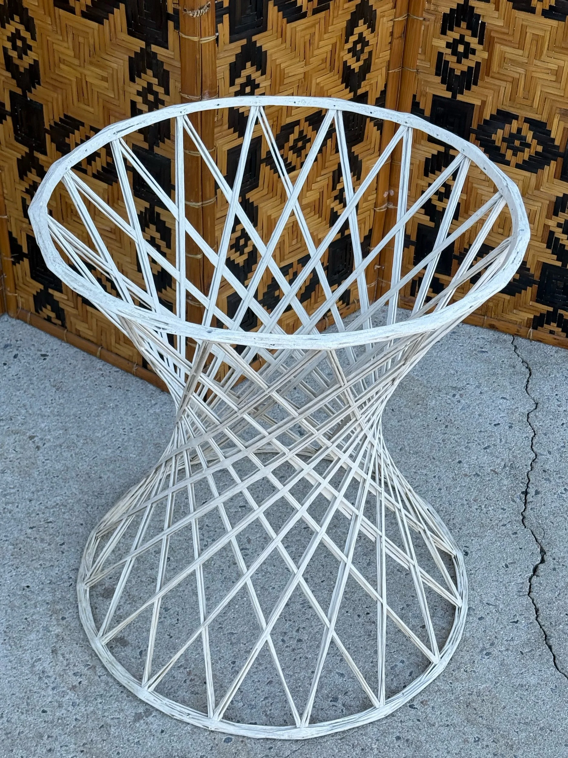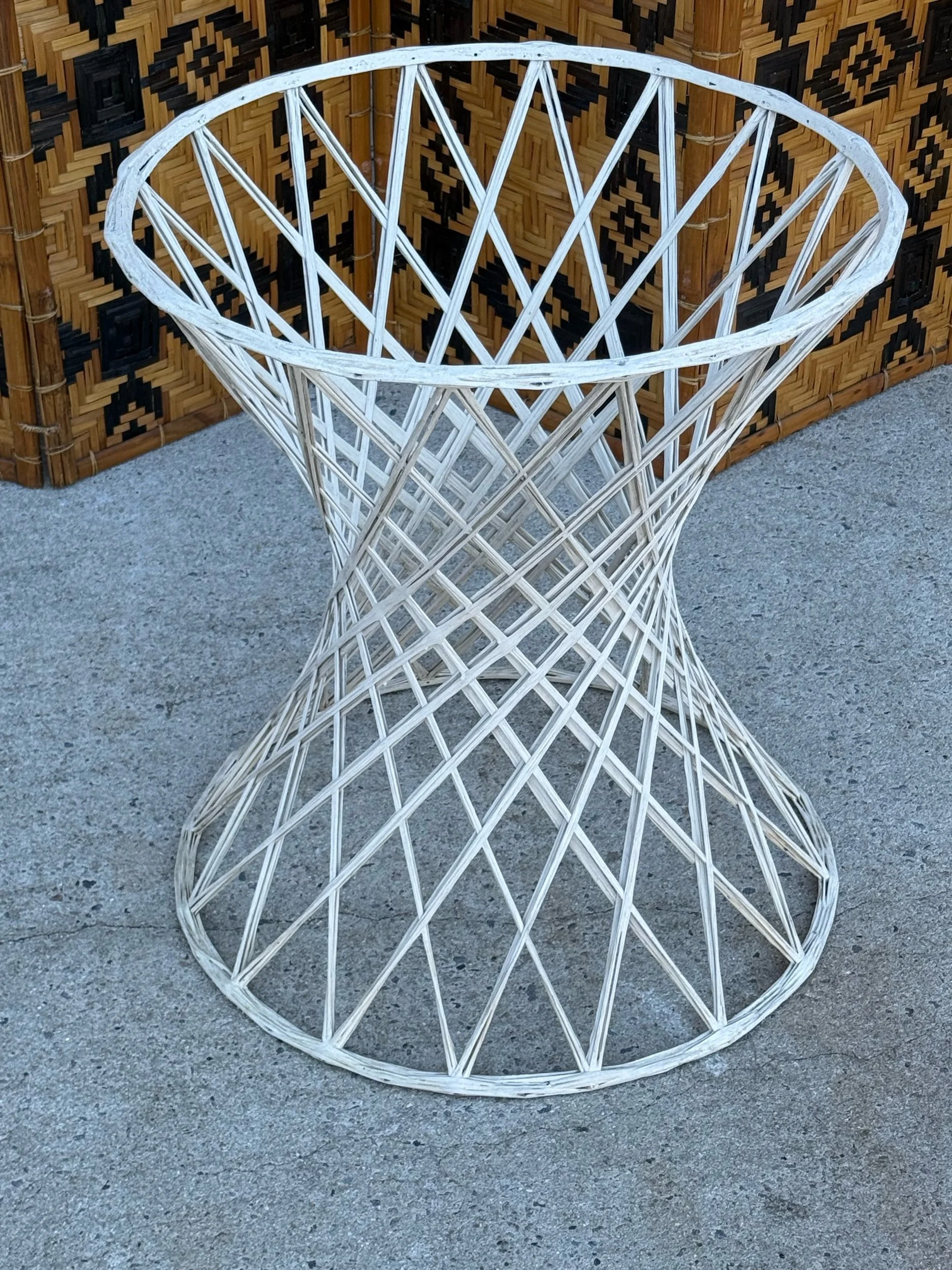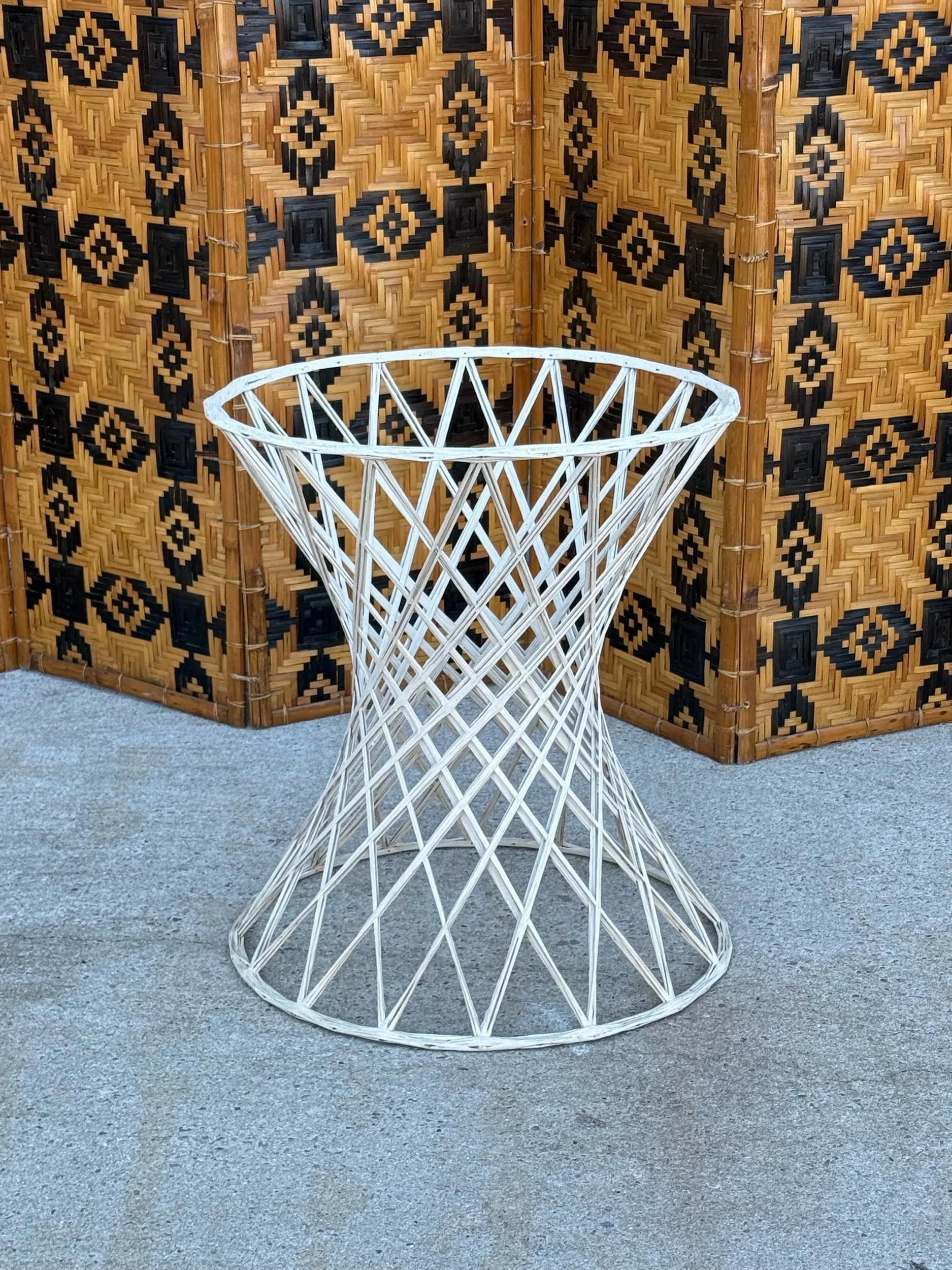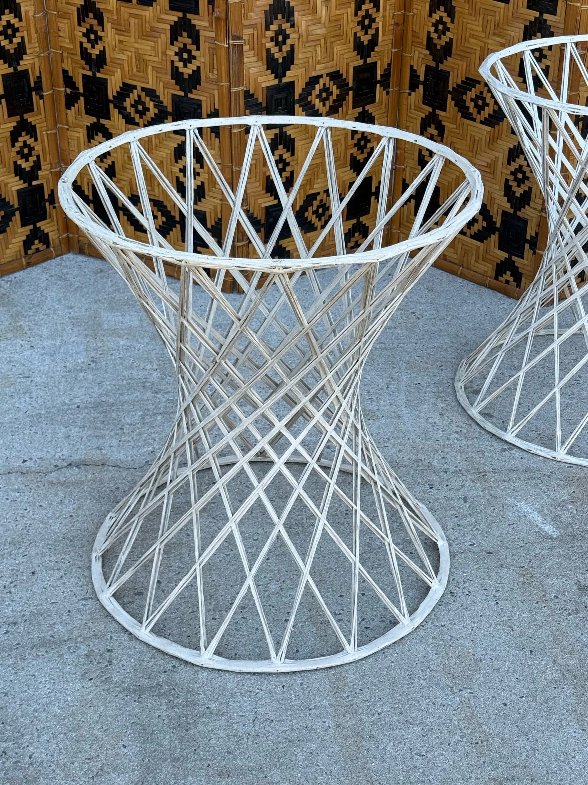 Two vintage spun fiberglass table bases by Russell Woodard. We are selling the bases as a pair or for individual purchase. The durable fiberglass allows the bases to be used both indoor and outdoor. The bases are beautifully made with geometric lines and an off-white coloration.